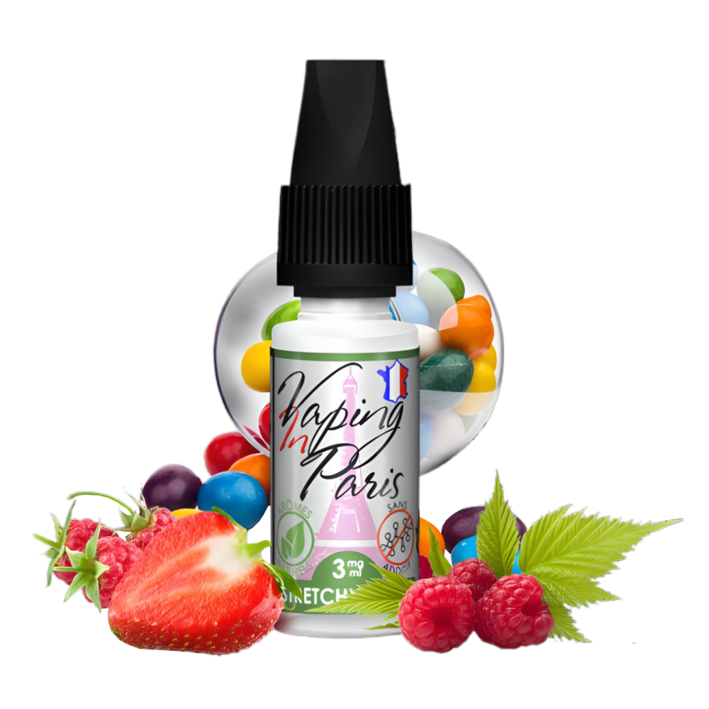 Das Stretchy Berry E-Liquid von Vaping in Paris kombiniert den süßen Geschmack von Erdbeeren und Himbeeren mit einer verspielten Bonbon- und Kaugummi-Note. Perfekt für Liebhaber fruchtiger und süßer Liquids!