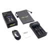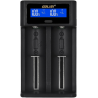 An LCD display above the charging slots shows all important information about the charging process and the charging status of the respective slot. Thanks to a built-in chip, the batteries are charged gently and evenly so that they can be used for as long as possible. Li-Ion batteries can be charged with up to 2A when using one slot, or 1A per slot when using both slots. Ni-mh batteries are charged with 0.5A each.