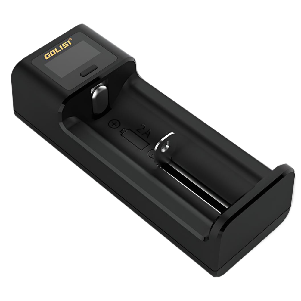 The Golisi i1 is an intelligent 1-bay charger that convinces with safety, high-quality workmanship and compact dimensions. The Golisi i1 is powered by a micro-USB port and supports charging up to 2A (with the appropriate USB port or socket adapter). The Golisi i1 accepts a wide range of battery types such as AA, AAA, 18350, 18650, 20700, 21700 or 26650 and recharges them safely and efficiently thanks to an intelligent chipset with automatic battery recognition. Extremely durable and flame-retardant materials such as PC/ABS and a military standard load spring make the Golisi i1 your long term companion. The easy to read display shows different values such as "%", "V", "mAh" or the time. Depending on the battery type the charging current can be adjusted manually from 0.5 to 2.0A.