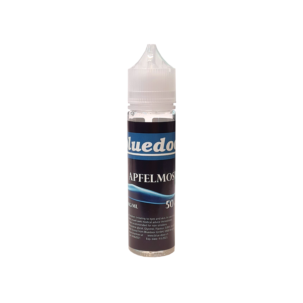 The Bluedoor Liquid le plus populaire. Apfelmost si bon goût qu´une collecte d´eau dans la bouche. Le Apfelmost (Jus de pomme) a le goût légèrement de pomme et n´a pas une note trop sucré.
