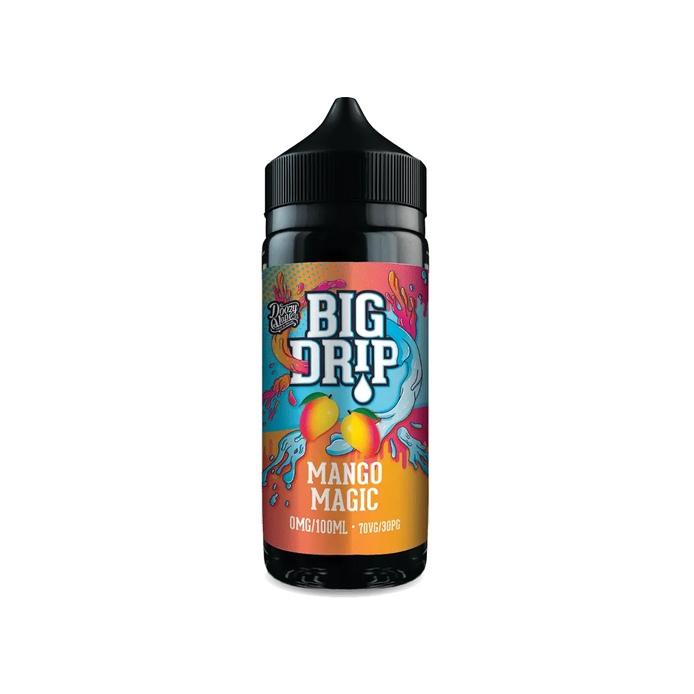 Big Drip Mango Magic E-liquide 100ml shortfill. Un mélange alléchant de fruits tropicaux et de tranches de mangue juteuses en font une combinaison magique.